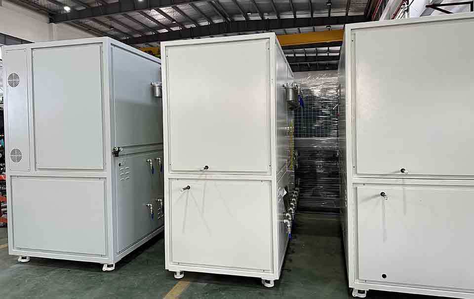 在化工業中江蘇制冷機組可降低化工反應釜(化工換熱器)溫度,及時帶走因化學反應而產生的熱量,提高產品質量;