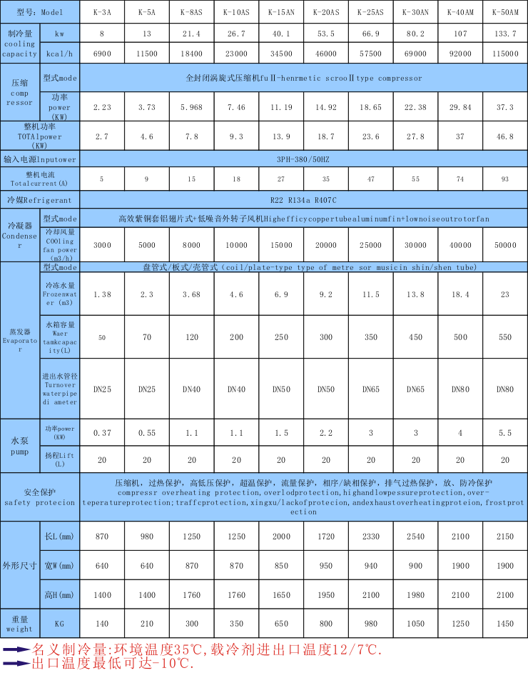 8.水冷及風(fēng)冷式規(guī)格齊全(功率:3HP-300HP,制冷量從600W至34800W)專門設(shè)有適合各行業(yè)機(jī)械設(shè)備配套之機(jī)型,可按客戶工藝要求制造。