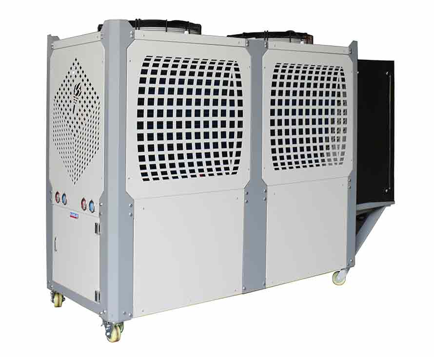 1、風冷式吹塑配套制冷機組,通過風扇以空氣為冷凝方式的控溫設備,有箱式和螺桿式;