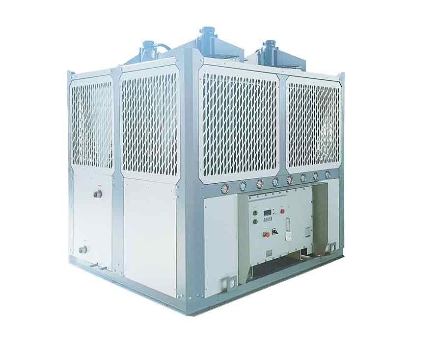 防爆型制藥用制冷機(jī)組有水冷式、風(fēng)冷式,水冷式防爆型制藥用制冷機(jī)組通過(guò)風(fēng)扇以空氣為冷凝方式的控溫設(shè)備,風(fēng)冷式防爆型制藥用制冷機(jī)組通過(guò)冷卻塔以冷卻循環(huán)水為冷凝方式的控溫設(shè)備。